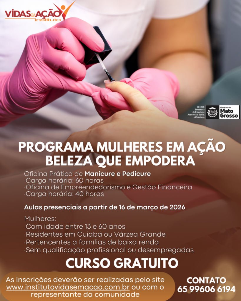 Capacitar 200 mulheres dos municípios de Cuiabá e Várzea Grande/MT na profissão de Manicure e Pedicure, aliada à formação em Empreendedorismo e Gestão Financeira, possibilitando inserção no mercado de trabalho e geração de renda própria.